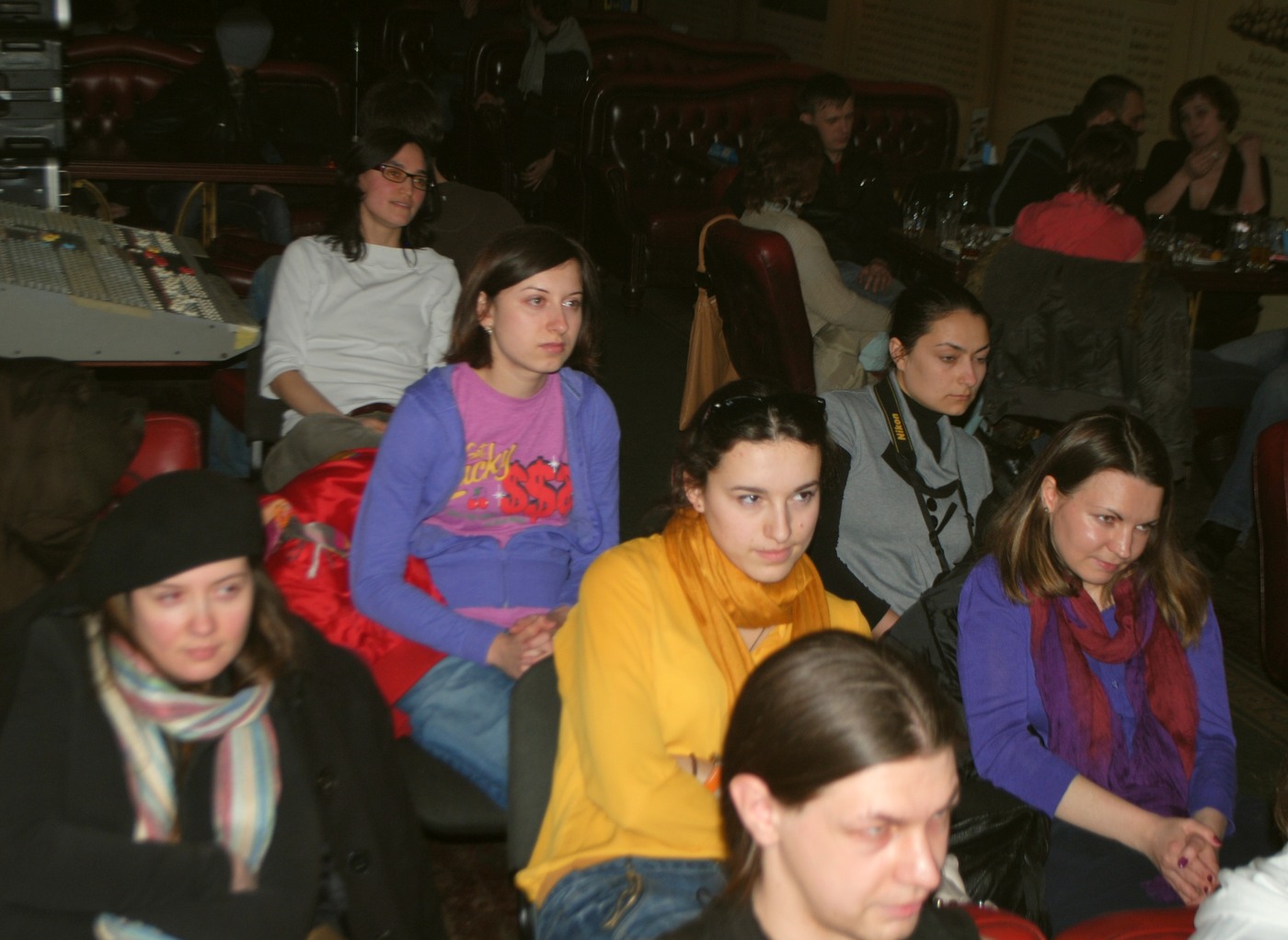 Наталя Боровик і Поліна Городиська в залі. Вечір Олега Коцарева і "ТЕЛЕРІ"в Дивані