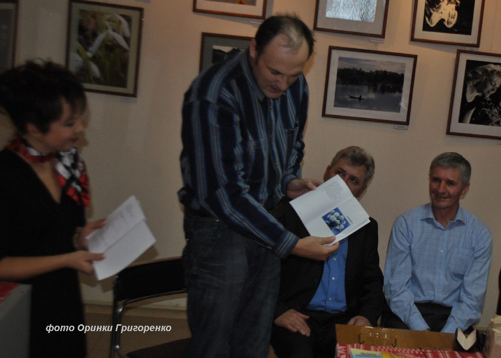 Микола Охріменко виступає у президії на презентації збірки віршів "Калинове сонце" Євгена Постульги
